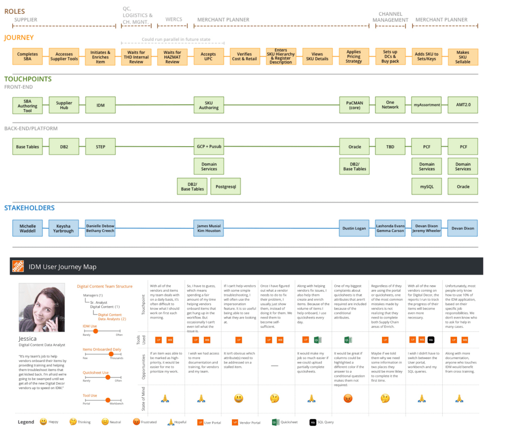 When I joined the Item Data Management (IDM) team, there wasn’t a UX team member that I was replacing. There was no documented understanding of the primary users of the system, suppliers who needed to provide all of the data about their products that the Home Depot required in order to sell their products in stores or online, or the process that they experienced trying to provide the data.