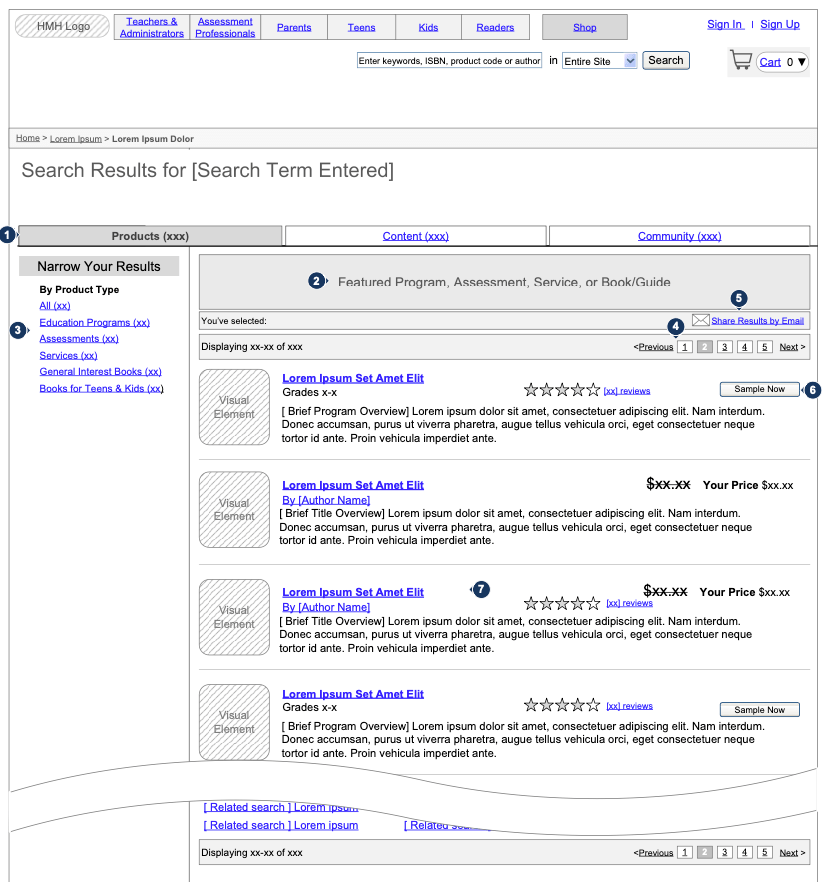 I interviewed stakeholders from most of the sub-brands in order to understand their products, how they differed from other HMH and competitor’s offerings so that I could create a site architecture that was easy to search and purchase from.